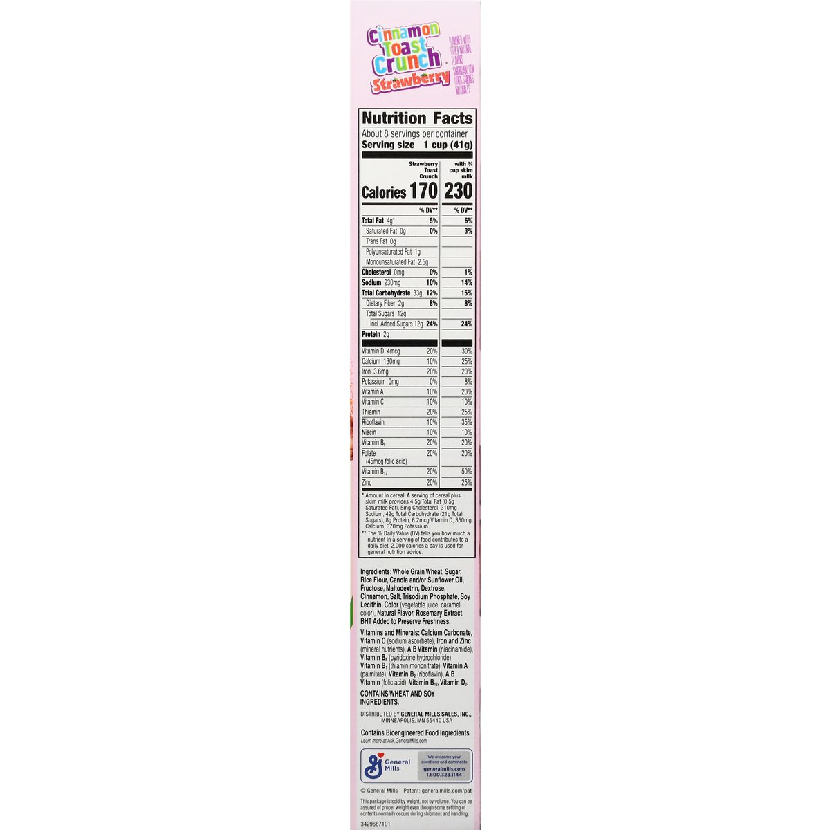 Sweetened whole wheat & rice cereal. Flavored with other natural flavors. Per 1 Cup Serving: 170 calories; 0 g sat fat (0% DV); 230 mg sodium (10% DV); 12 g added sugars (24% DV). 16 g whole grain* per serving. *16 g whole grain per serving. At least 48 g recommended daily. Good source of calcium. With 12 vitamins & minerals. See nutrition facts for "as prepared" information. Contains bioengineered food ingredients. Learn more at Ask.GeneralMills.com. This package is sold by weight, not by volume. You can be assured of proper weight even though some settling of contents normally occurs during shipment and handling. generalmills.com. how2recycle.info. Ask.GeneralMills.com. We welcome your questions and comments. generalmills.com. 1.800.328.1144. Box Tops for Education: Download the app. Scan your receipt. Earn cash for schools. Certified 100% recycled paperboard.