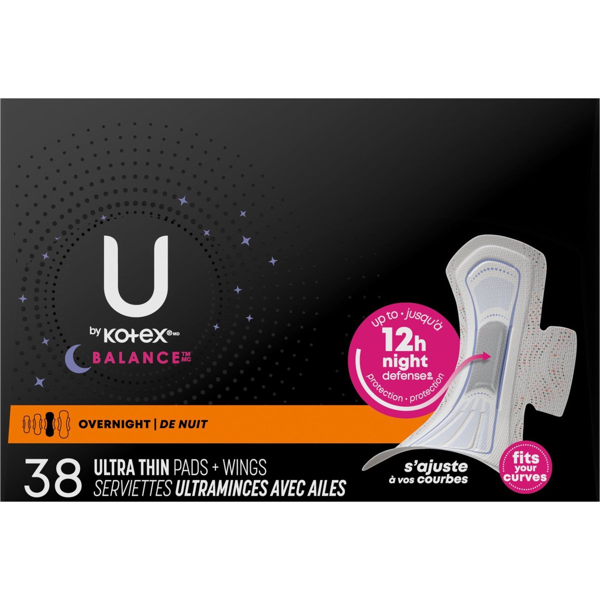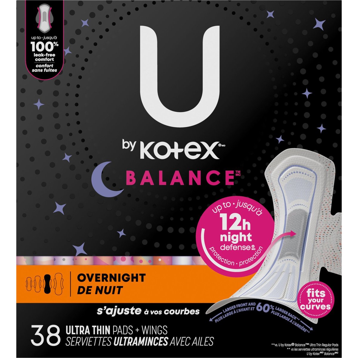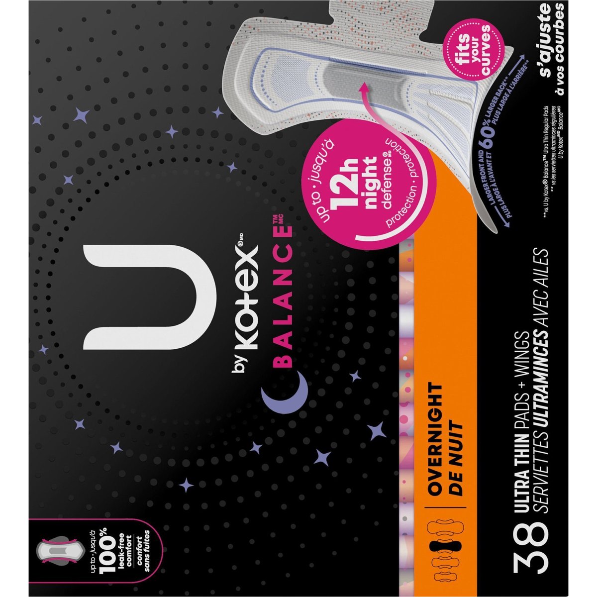 U by Kotex Balance Pads + Wings, Ultra Thin, Overnight
