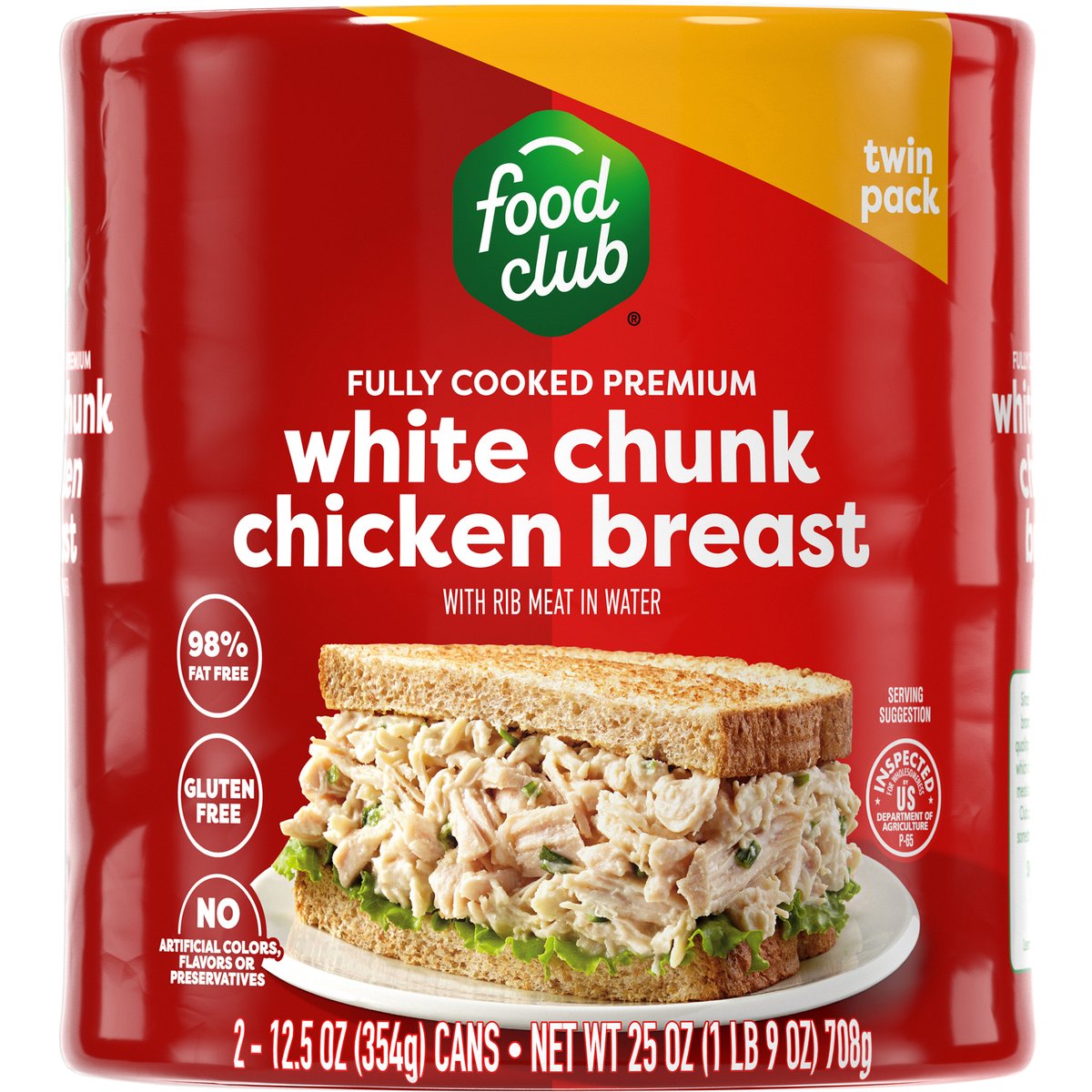 Food Club Twin Pack White Chunk with Rib Meat in Water Chicken Breast