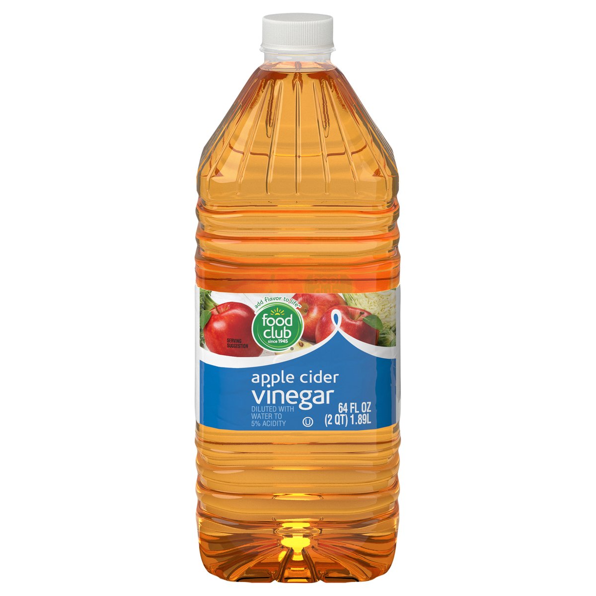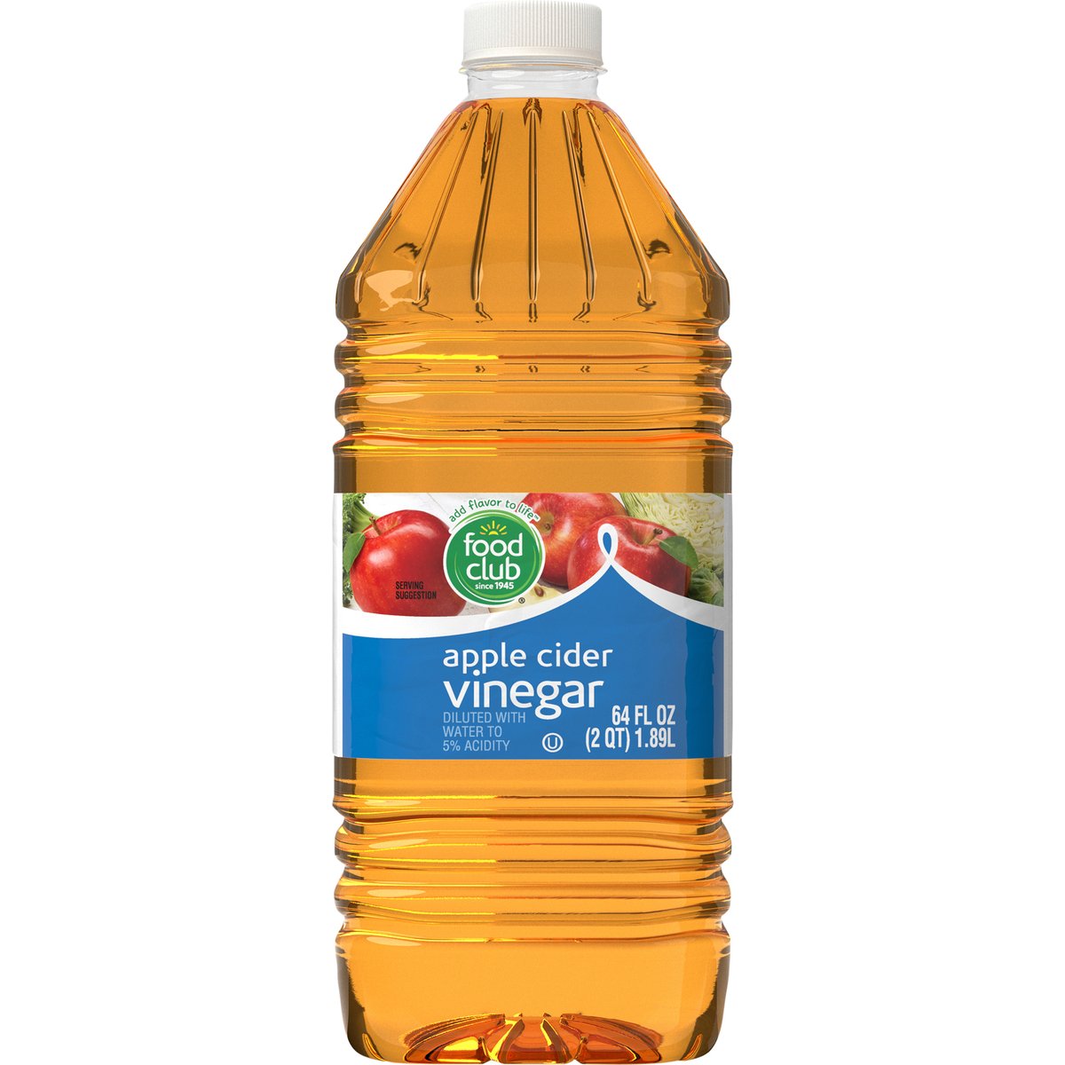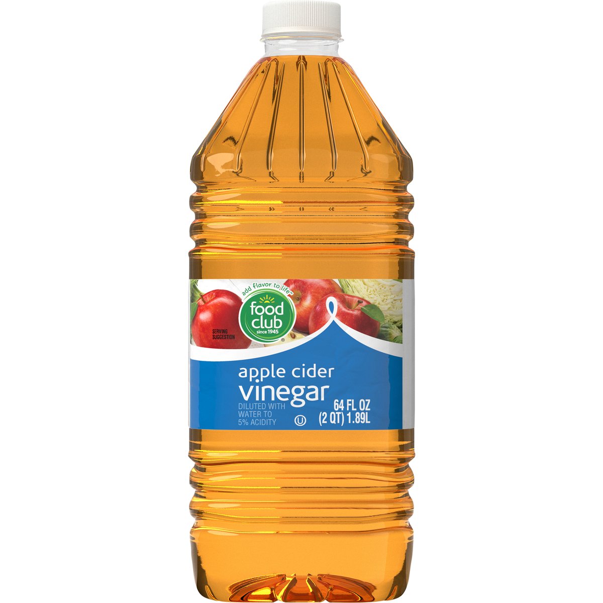 Diluted with water to 5% acidity. Add flavor to life. Since 1945. Quality Guaranteed: 100% satisfaction or double your money back. www.foodclubbrand.com. Scan for more food information or call 1-888-423-0139. Please recycle. Product of USA.