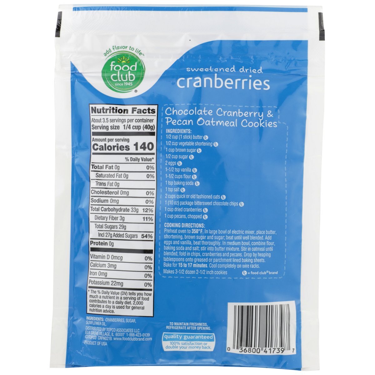 Food Club Sweetened Dried Cranberries