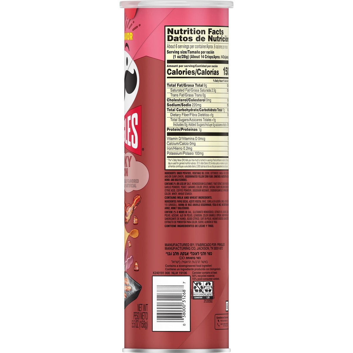 Naturally & artificially flavored. Contains a bioengineered food ingredient. New flavor. pringles.com. how2recycle.info. Questions or Comments? Visit: pringles.com. Call: 1-800-568-4035. Canister contains at least 50% recycled material; 15% post-consumer content.