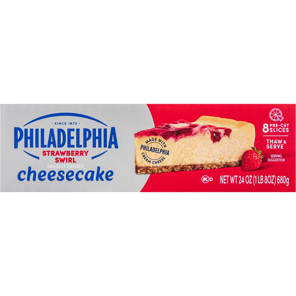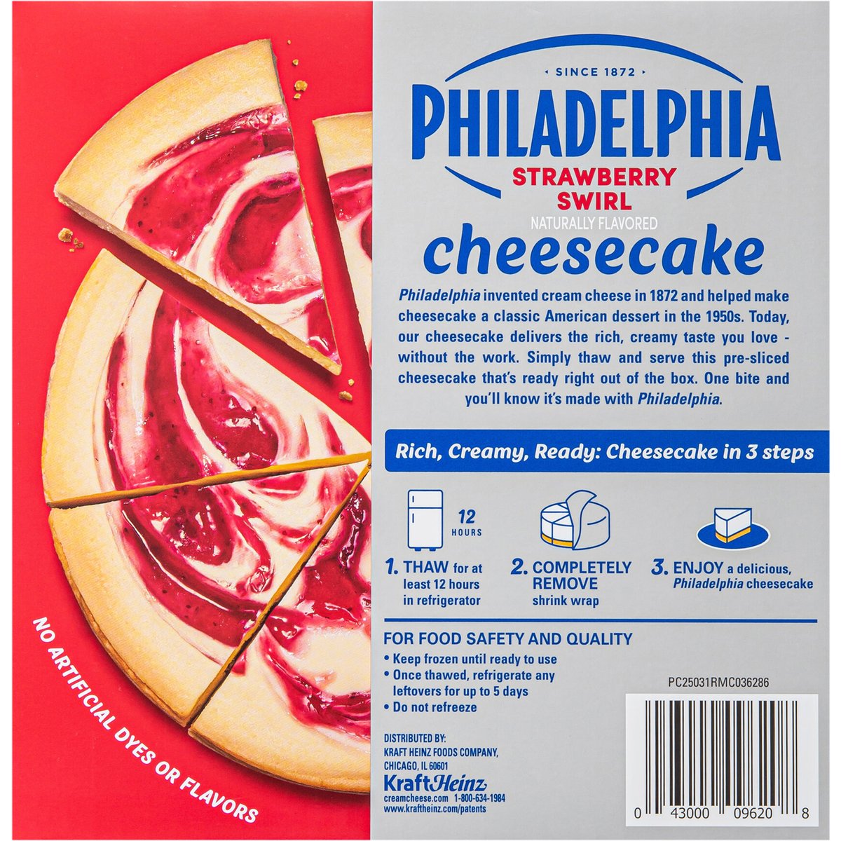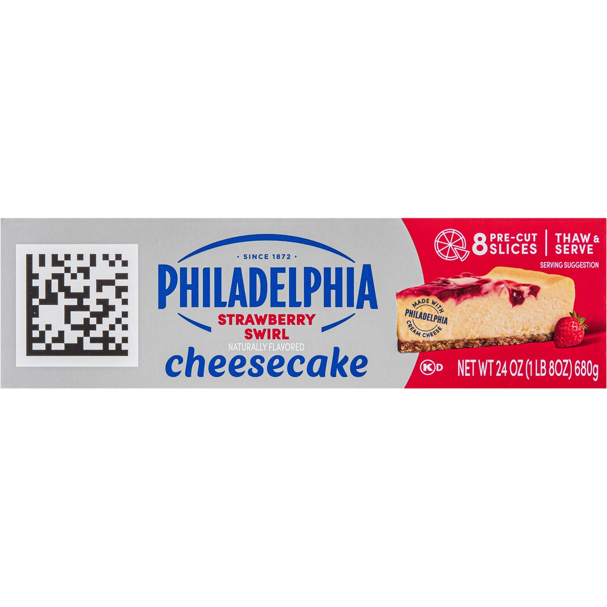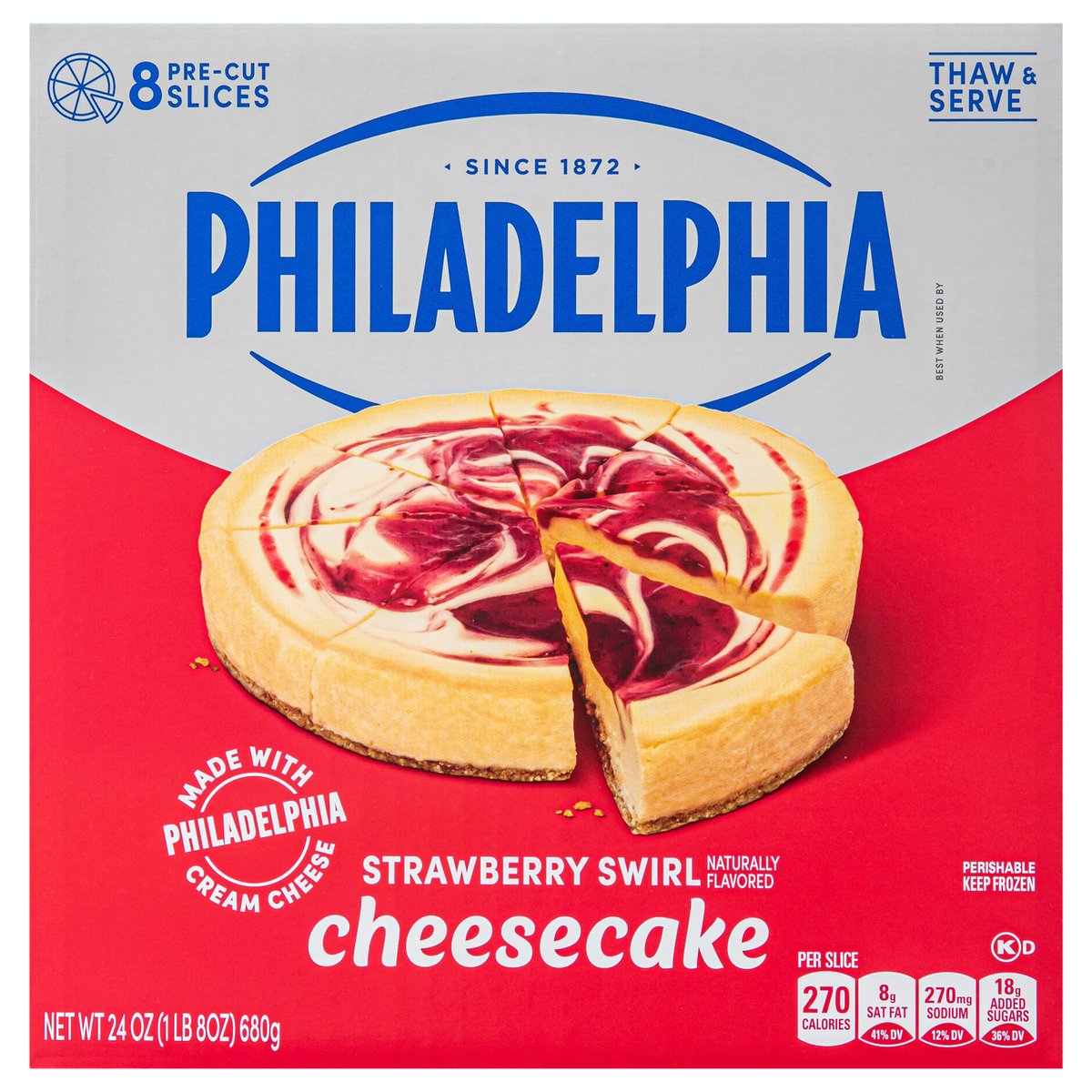 Naturally flavored. Derived from bioengineering. Since 1872. Thaw & serve. Philadelphia invented cream cheese in 1872 and helped make cheesecake a classic American dessert in the 1950s. Today, our cheesecake delivers the rich, creamy taste you love without the work. Simply thaw and serve this pre-sliced cheesecake that's ready right out of the box. One bite and you'll know it's made with Philadelphia. creamcheese.com.