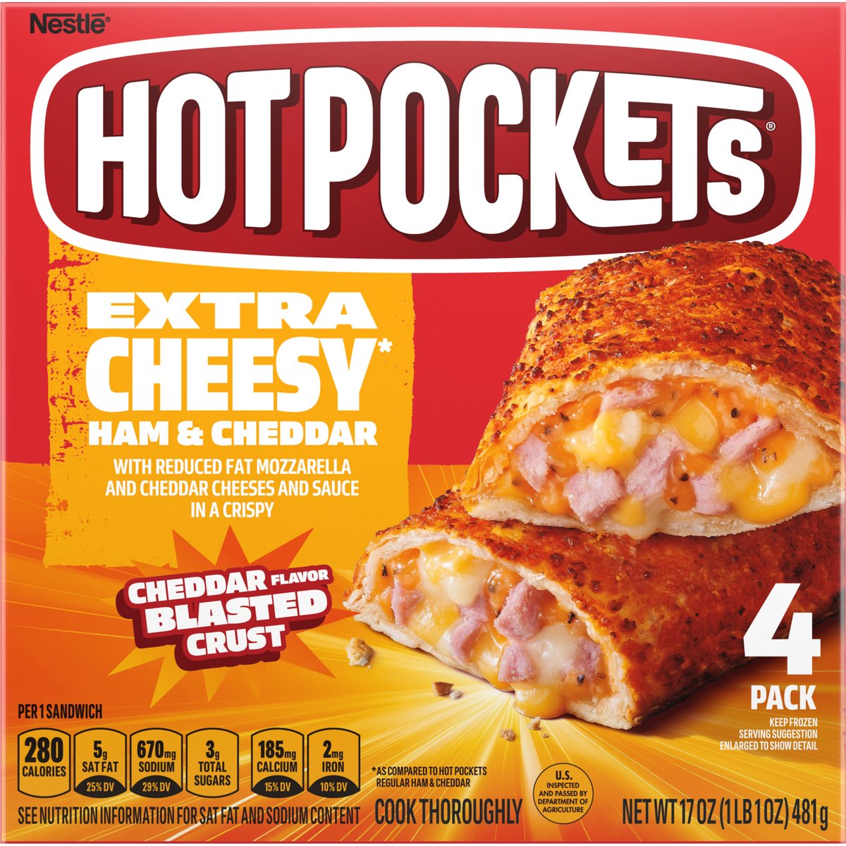 Hot Pockets Cheddar Flavor Blasted Crust Extra Cheesy Ham & Cheddar Sandwiches