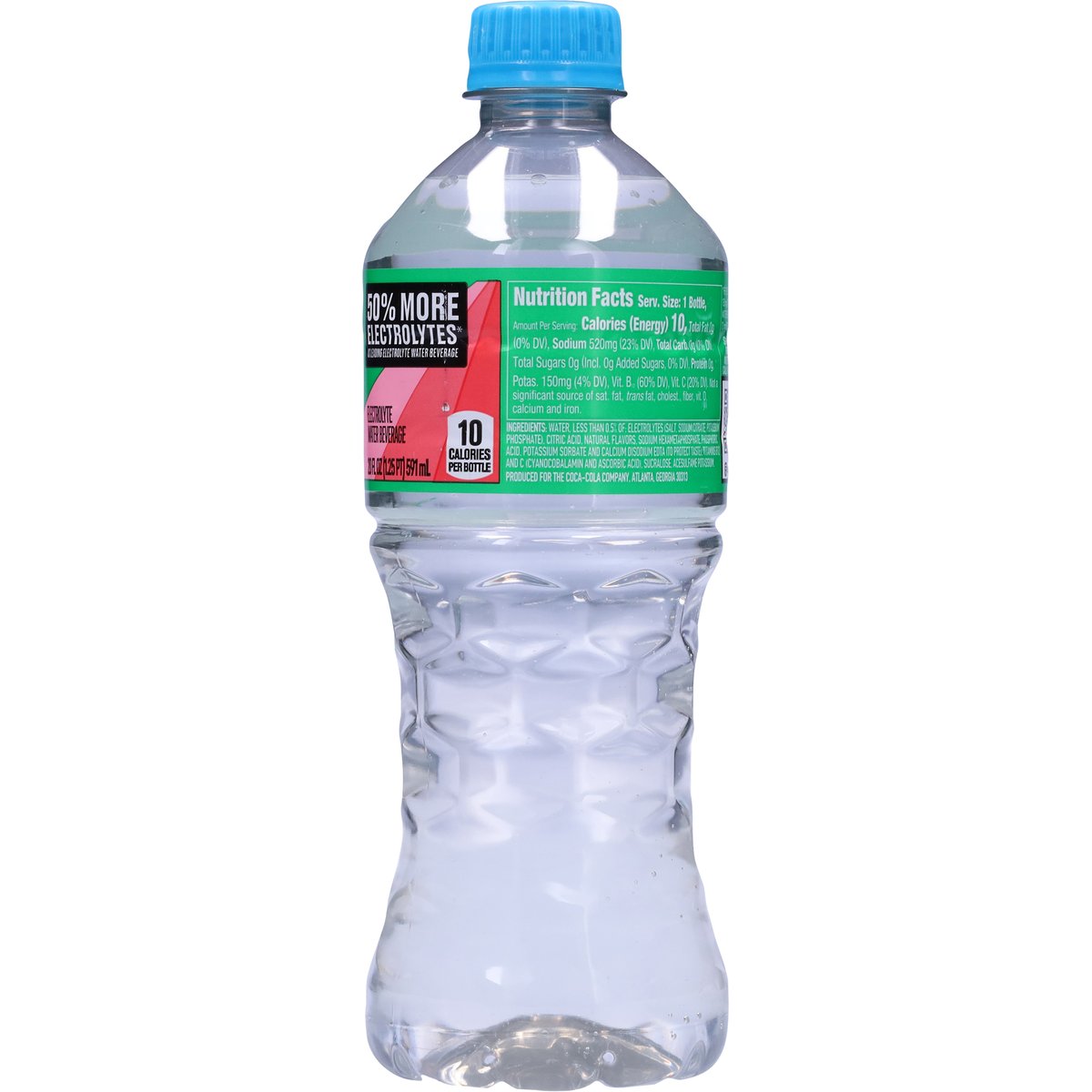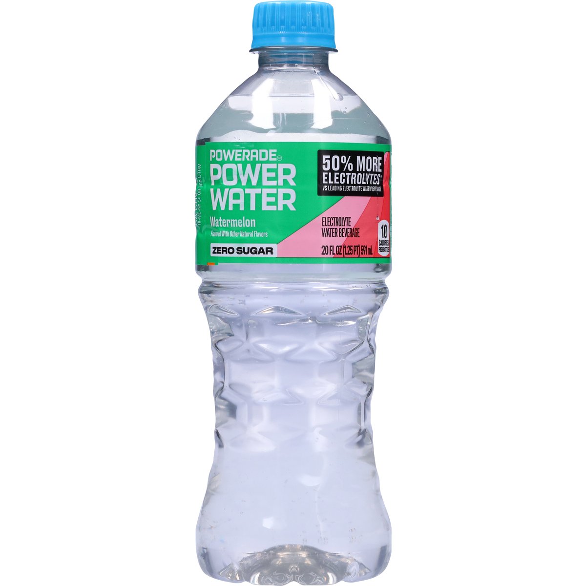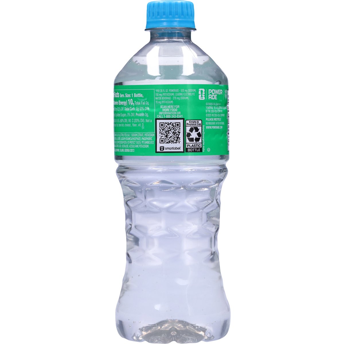 Flavored with other natural flavors. 10 calories per bottle. Zero sugar. 50% more electrolytes* vs leading electrolyte water beverage. * Per 20 fl oz Powerade - 520 mg (sodium), 150 mg (potassium): leading electrolyte water beverage - 270 mg (sodium). 70mg (potassium). www.powerade.com. how2recycle.info. SmartLabel: Scan for more food information or call 1-800-343-0341. Please recycle.
