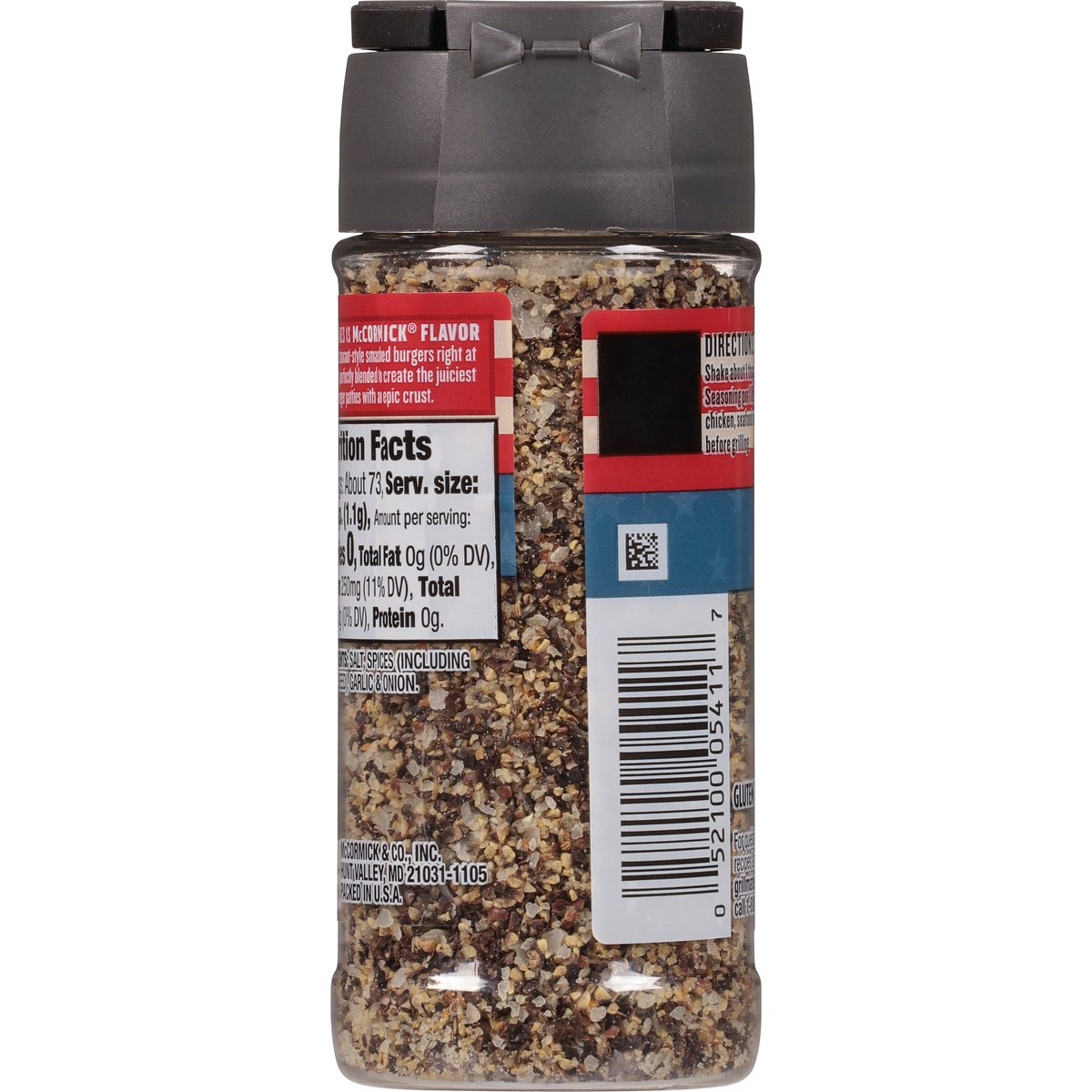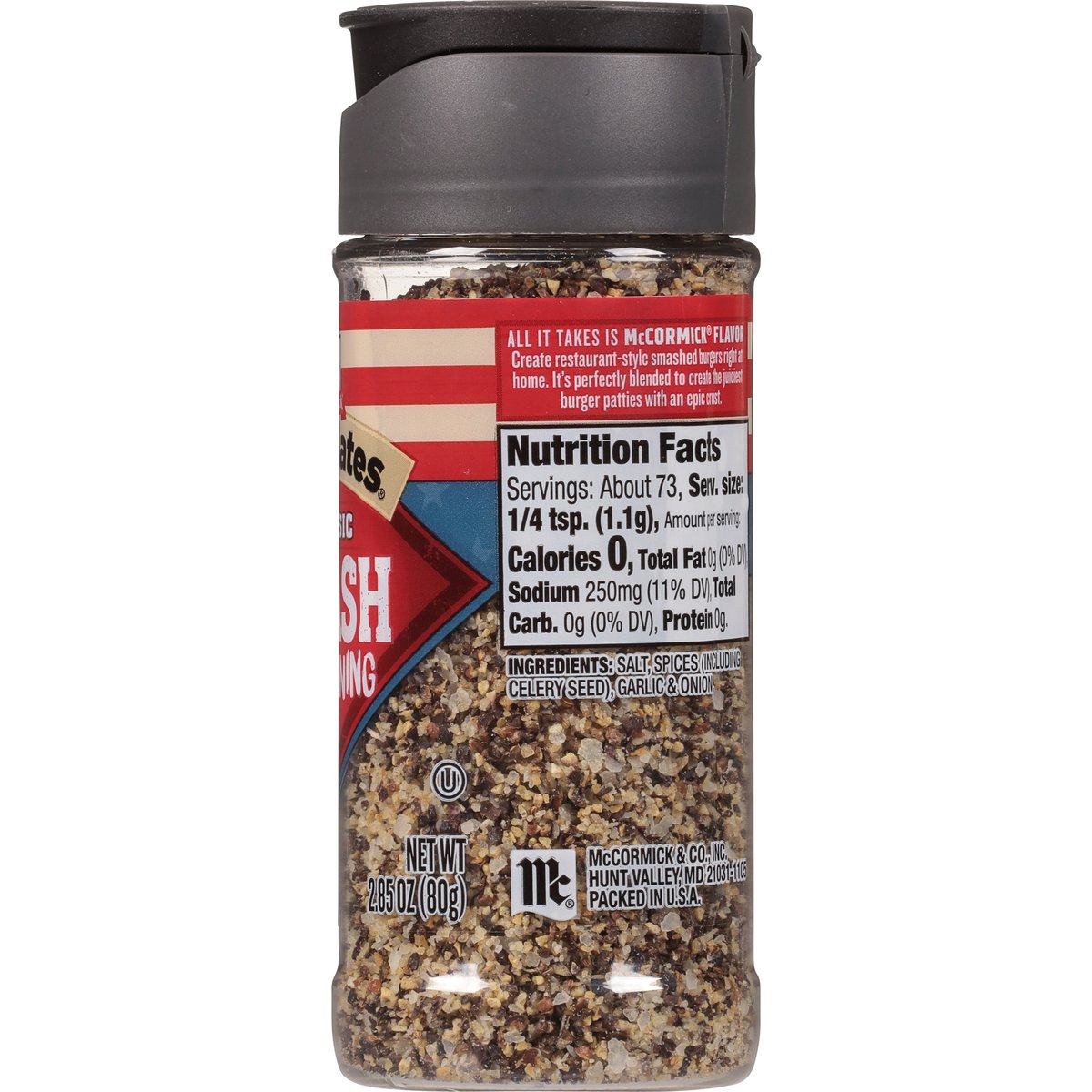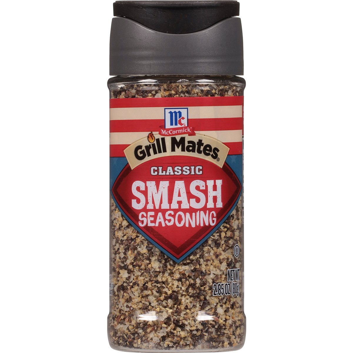 Gluten free. Snap tight lid. All it takes is McCormick flavor. Create restaurant-style smashed burgers right at home. It's perfectly blended to create the juiciest burger patties with an epic crust. grillmates.com/info. For questions, recipes & more, visit grillmates.com/info or call 1-800-632-5847. Packed in U.S.A.