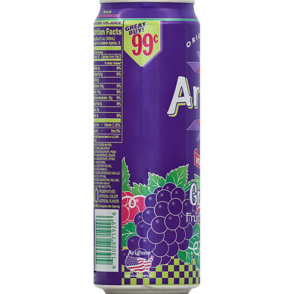 Original brand. Vitamin C fortified. 100% natural. Antiox. Vitamin C antioxidant. Great buy! 99 cents. An American company. Visit us at www.DrinkArizona.com. Contains 10% juice. For more information about Arizona call 1-800-832-3775. No preservatives; artificial color; artificial flavor.
