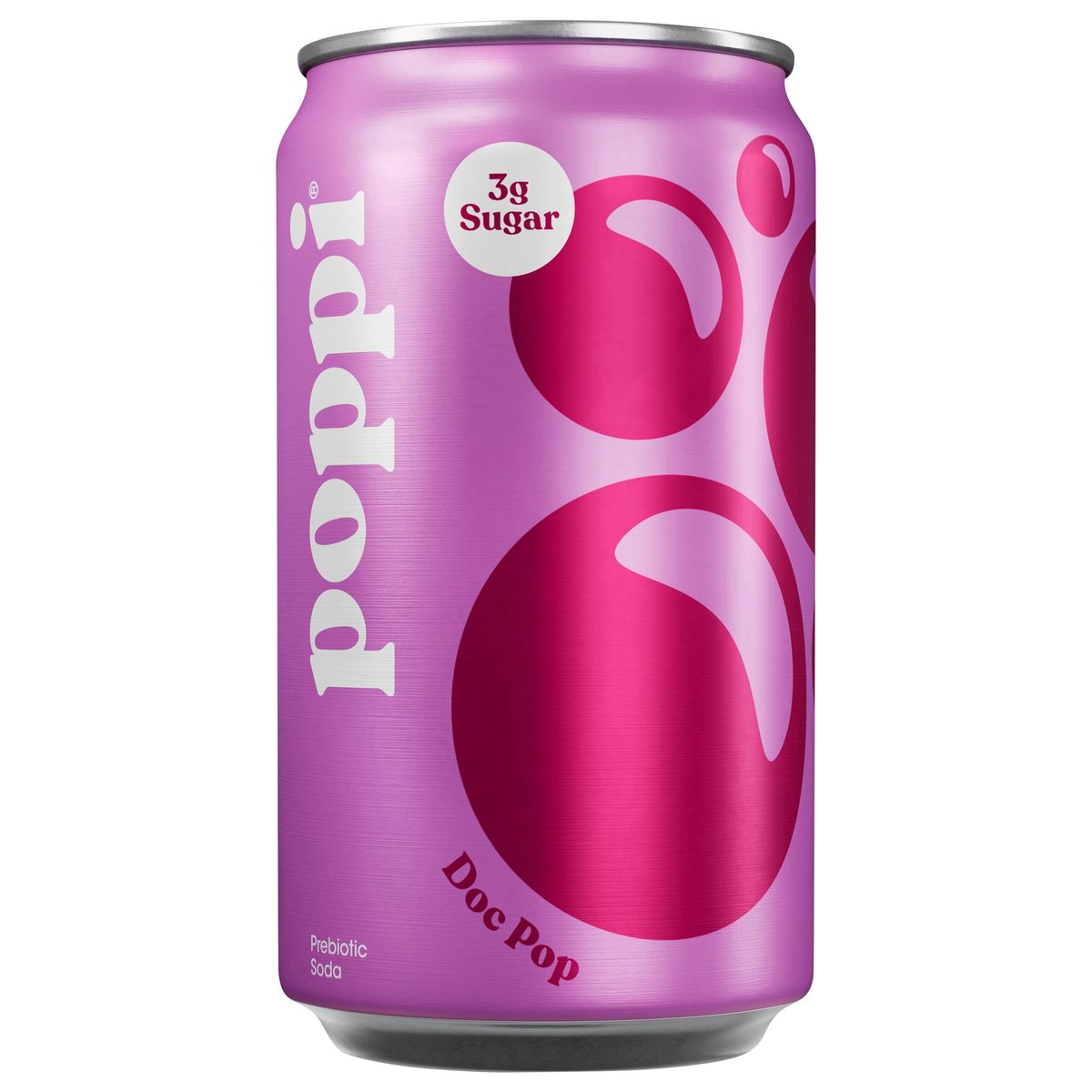 3 g sugar. Certified gluten free. gfco.org. Natural caffeine. Contains 25 mg natural caffeine. Non-GMO Project verified. nongmoproject.org. Ingredients you can love. Prebiotics. Doc pop. Infused with apple cider vinegar. Prebiotic soda. Let's Be Friends @drinkpoppi. Please recycle.