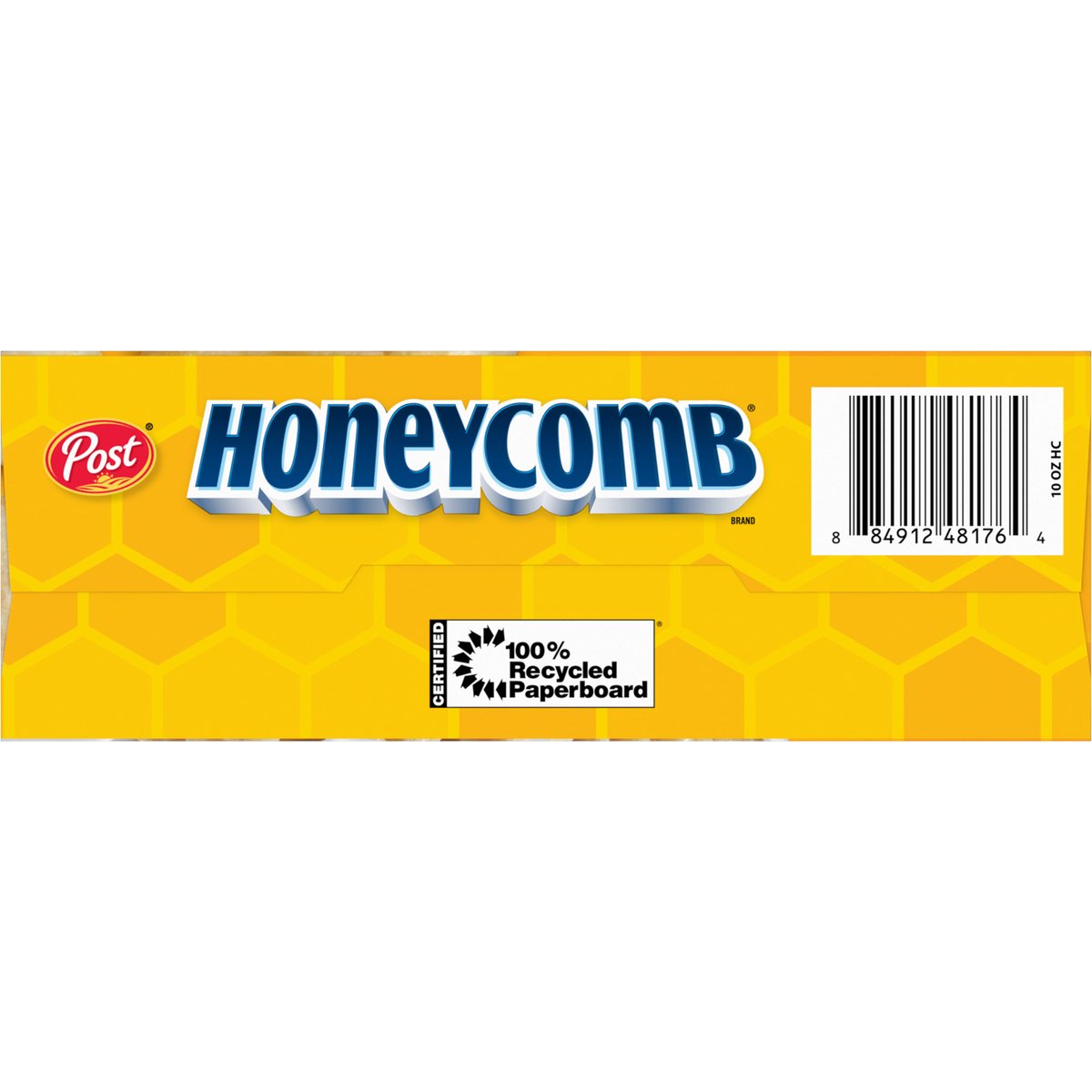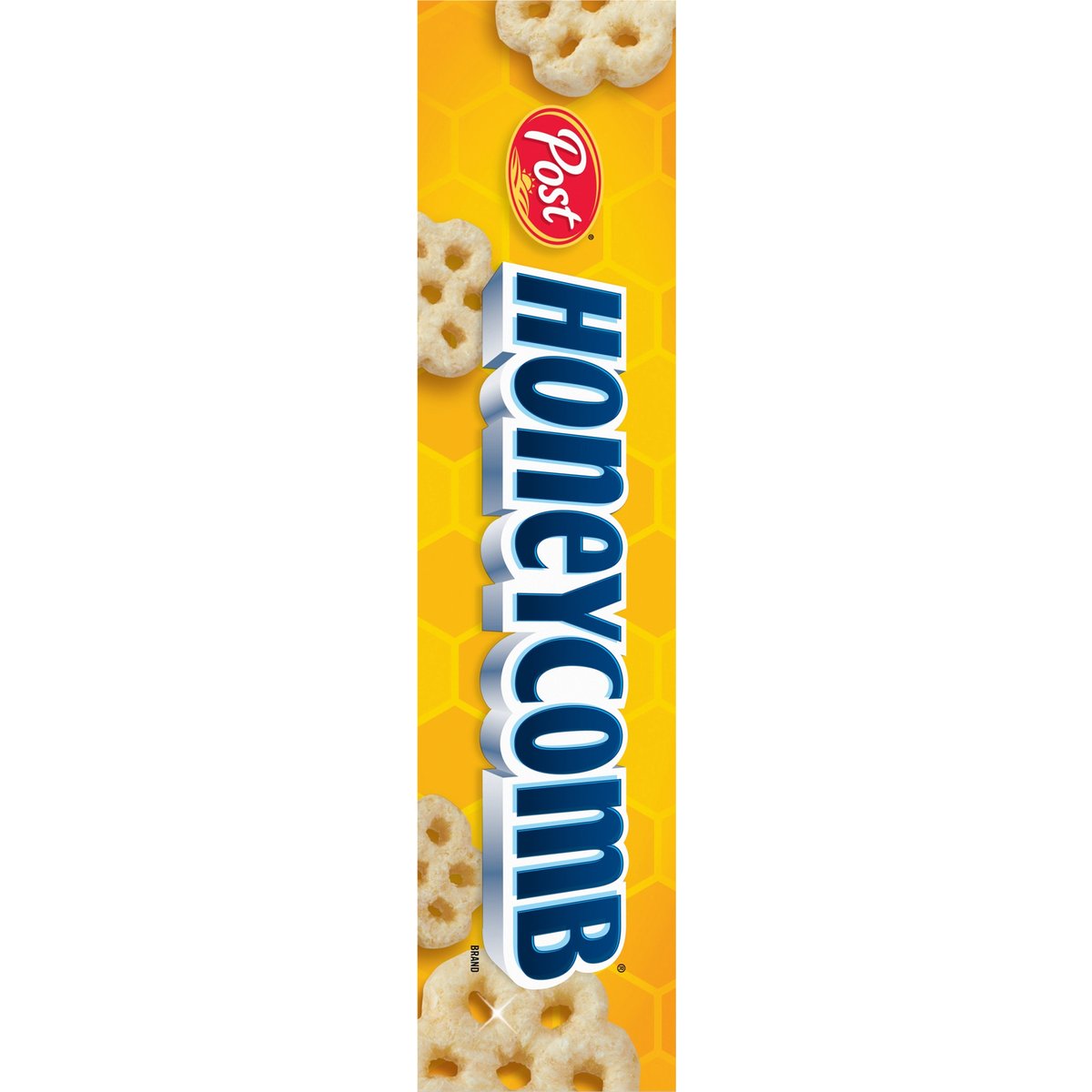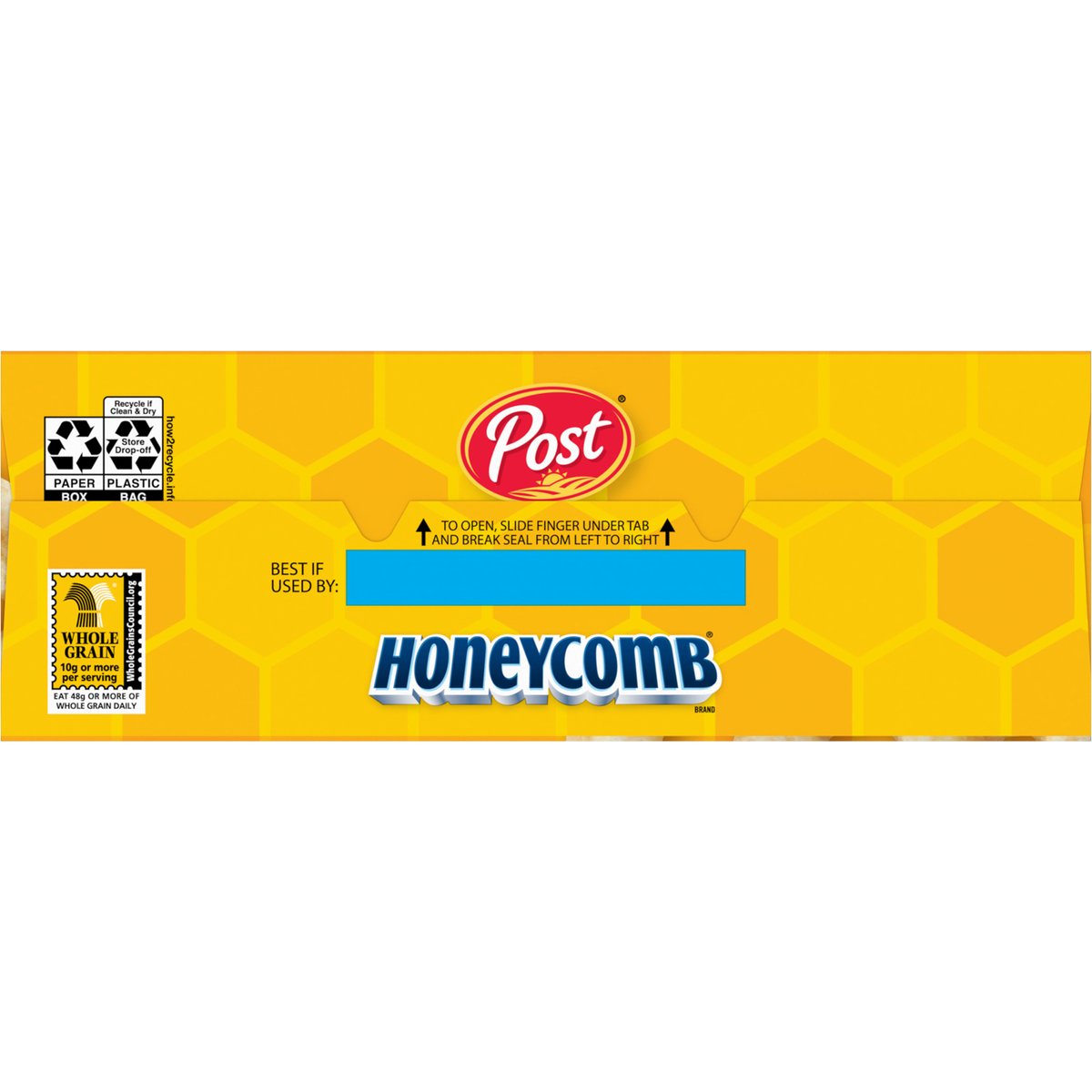 Sweetened corn & oat cereal. Per 1-3/4 Cup Serving: 160 calories: 0 g sat fat (0% DV); 190 mg sodium (8%DV); 12 g added sugars (25% DV). Whole grain 10 g or more per serving. Eat 48 g or more of whole grain daily. WholeGrainsCouncil.org. Contains bioengineered food ingredients. 7 days, 7 ways to make this your…biggest week ever! Day 1: Be kind. Practice a random act of kindness. Day 2: Be confident. Don’t be afraid to be your unique self. Day 3: Be adventurous. Try something you’ve never done before. Day 4: Be creative. Make something cool. Day 5: Be independent. Take the initiative to do something yourself. Day 6: Be a dreamer. You can achieve great things if you dream big. Day 7: Be brave. Be confident in doing the right thing. Honeycomb can help fuel your dreams! postconsumerbrands.com. how2recycle.info. Visit us at: postconsumerbrands.com or call weekdays: 1-800-431-Post (7678) please have package available. Certified 100% recycled paperboard.
